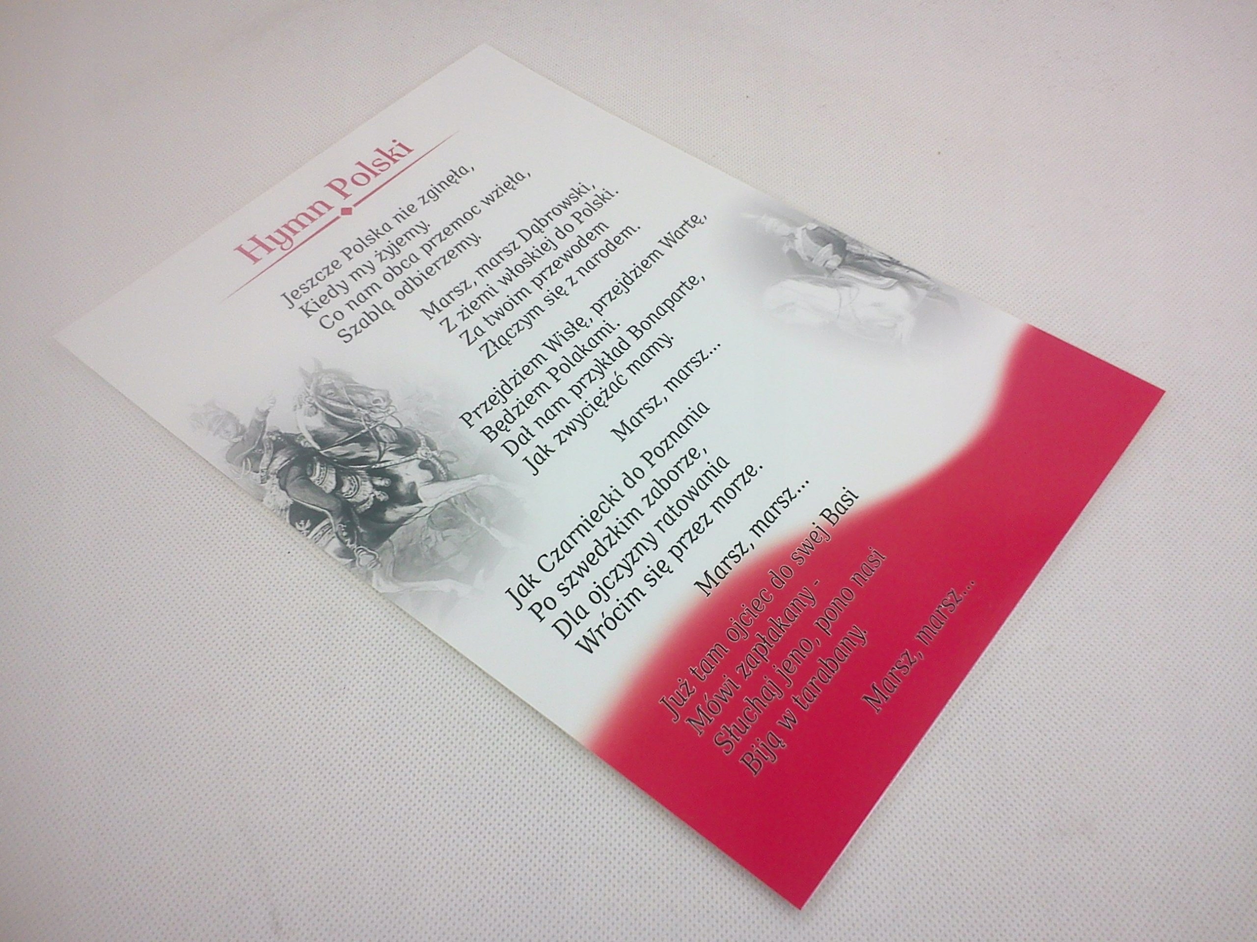 Jeszcze polska nie zginęła,kiedy my żyjemy.co nam obca przemoc wzięła,szablą odbierzemy.marsz, marsz, dąbrowski…z ziemi włoskiej do polski.